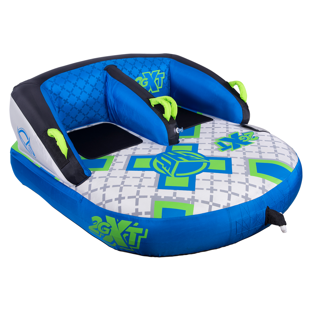 The name says it all –2GXT. XT stands for eXtra Tough. We spared no expense with this towable tube and we stand behind it with our INDUSTRY FIRST 3 YEAR LIMITED WARRANTY. Our customers asked for an “EXTRA TOUGH” version of our best seller 2G and we answered by building the XT with the thickest and toughest materials money can buy. Grab a friends and sit down in the ergonomic, lounge style seats! Made from only the finest materials and backed by our 3 year limited warranty, the 2GXT will keep you where you want to be…on the water! One, two or three rider towable