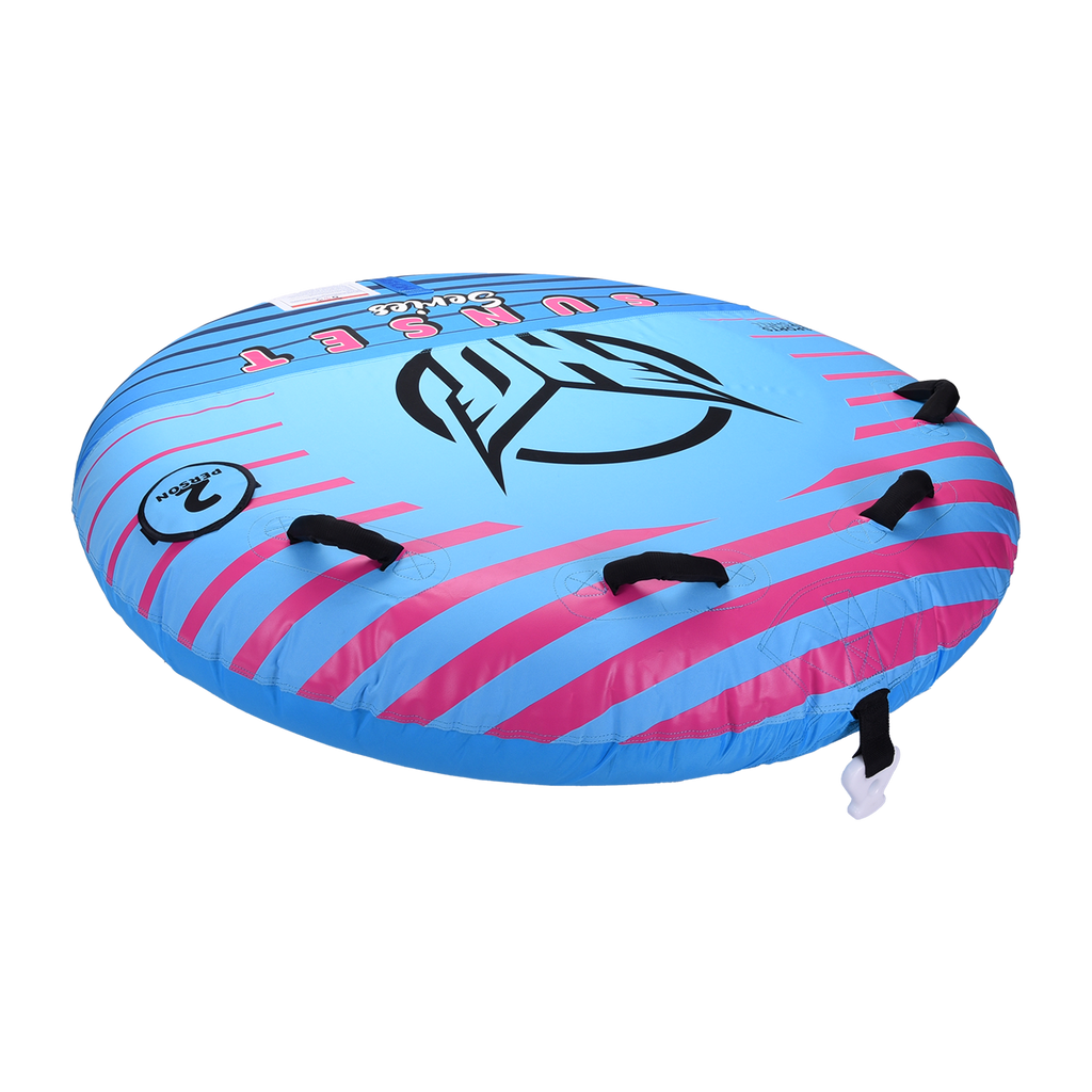 Traditionally, there has been very little difference between round, deck style tubes. You can buy one from any inflatable maker and they’re basically all the same. That is…until now. With the addition of HO Sports’ Shoftshell Technology, now you can tube all day without worrying about the abrasion or “tube rash” that you would get from a traditional nylon covered tube. This new technology is the best thing to happen to tubes since the introduction of the nylon cover. So, grab a friend and hop aboard this 2 rider deck tube and have fun out there!