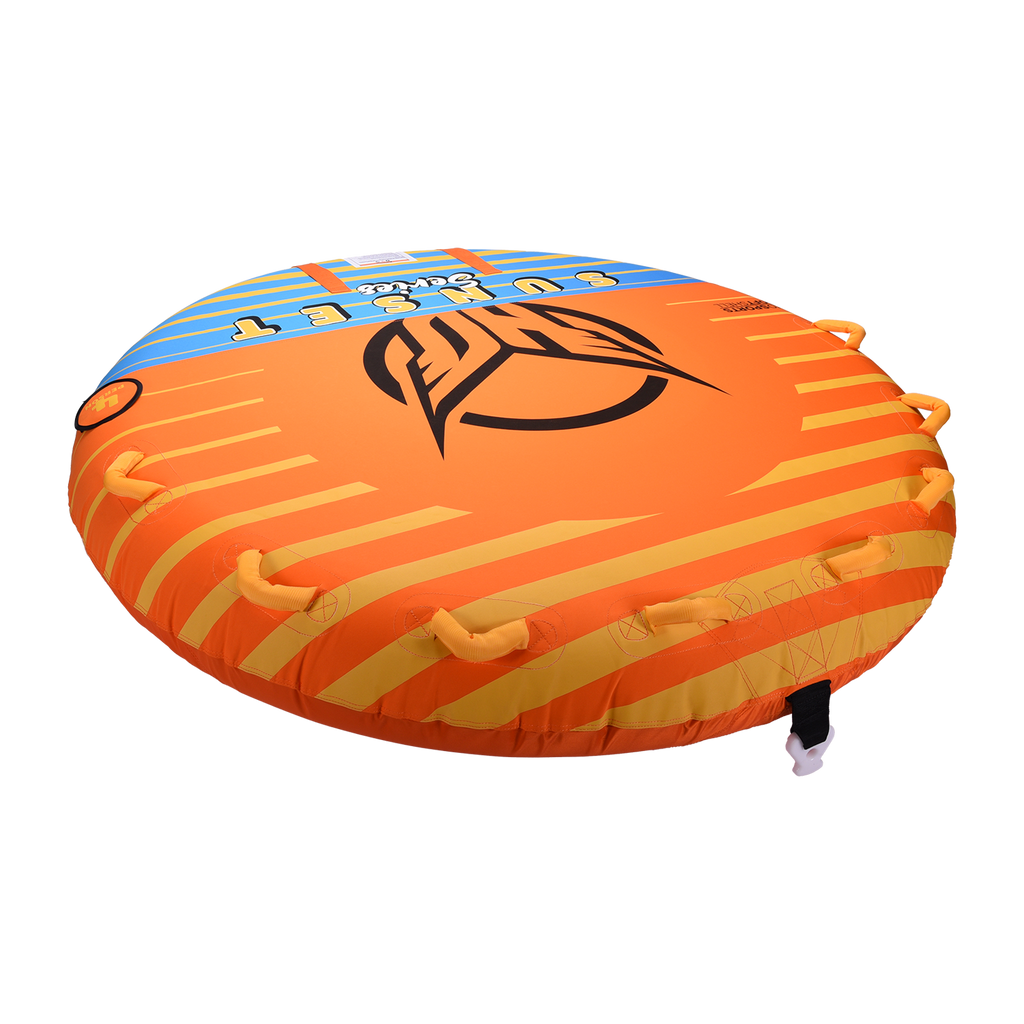 Traditionally, there has been very little difference between round, deck style tubes. You can buy one from any inflatable maker and they’re basically all the same. That is…until now. With the addition of HO Sports’ Shoftshell Technology, now you can tube all day without worrying about the abrasion or “tube rash” that you would get from a traditional nylon covered tube. This new technology is the best thing to happen to tubes since the introduction of the nylon cover. So, grab a few friends and hop aboard this 4 rider deck tube and have fun out there!