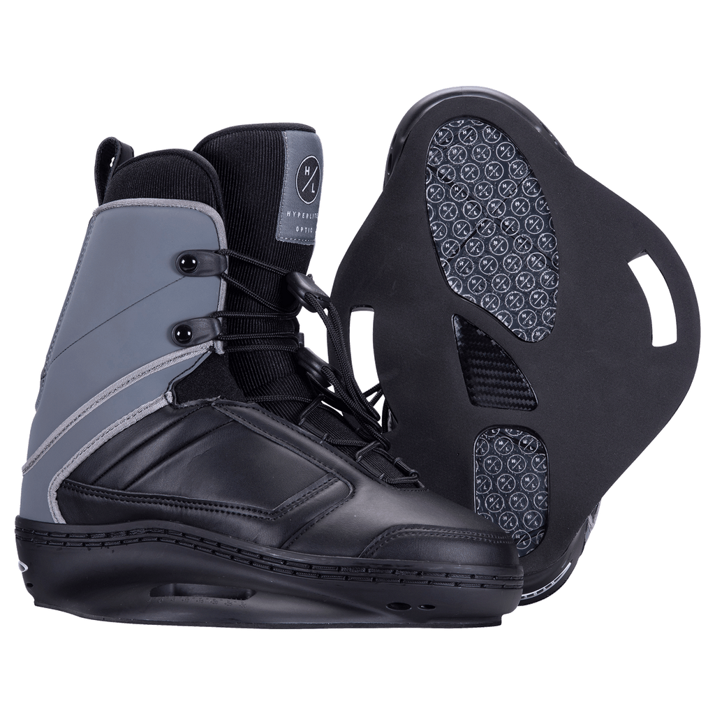 Hyperlite's new Optic Binding is geared for the youth pushing their abilities on the Wakeboard. The ability level of today's young wakeboarders is mind blowing and the Optic delivers a high end closed toe design so kids can continue to crush it. With a mid-level support and range of motion binding design, kids can adjust the Optic with dual lace zones, tensioning the lower foot and upper ankle for the perfect feel. J-Bars and the Internal Harness keep kid's heels in place and the Optic's 3D Molded Liner and Dual Density Footbed ensure a comfy fit and soft landings, cause the kids are going so big today!