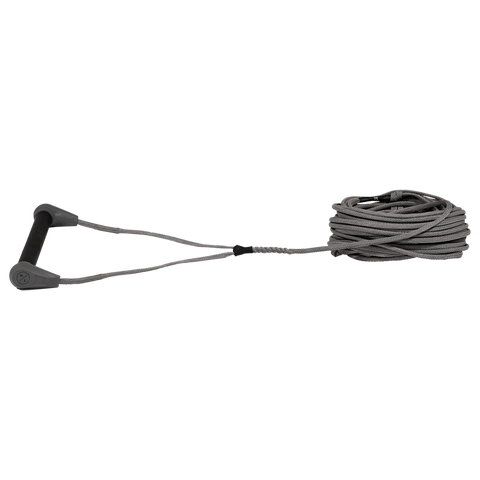 The Outlaw Handle with Spectra Fusion Rope is a high-performance wakeboard tow kit designed for durability and comfort. It features an AX Suede G-Series Grid grip for a secure and comfortable hold, finished with TPU endcaps for added durability. The rope is made from Spectra Fusion, a strong and lightweight material, with a total length of 75 feet. The setup includes a 50-foot main section and four smaller 5-foot sections, allowing for customizable length and flexibility during wakeboarding sessions.